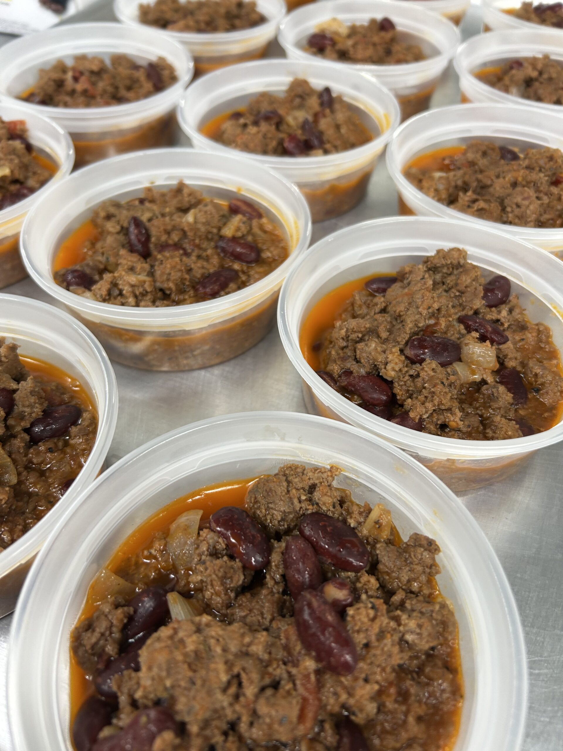 Classic Beef Chili featuring ground beef and kidney beans, served with shredded cheddar cheese and sweet cornbread
